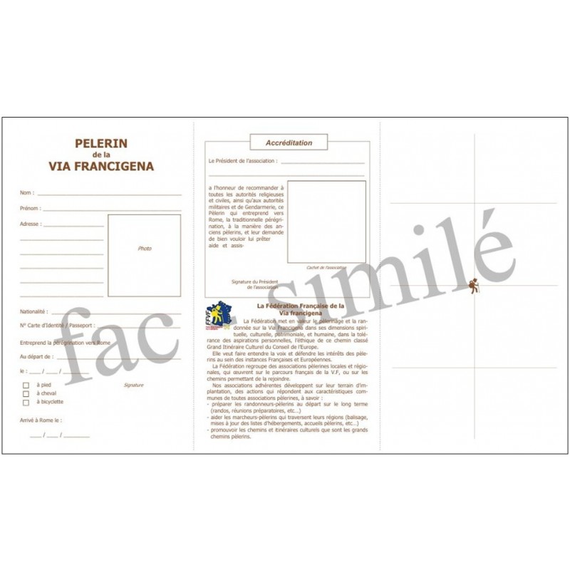 Crédenziale del pellegrino della Via Francigéna :